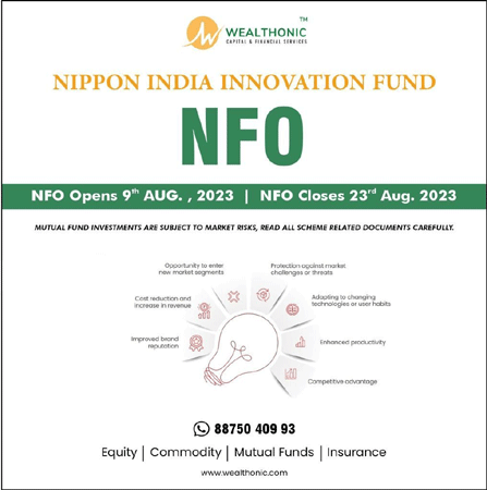 बीकानेर Abhayindia.com वेल्थोनिक कैपिटल, एक प्रमुख वित्तीय सेवा प्रदाता, निवेशकों को एक नये एनएफओ निप्पोन इंडिया इनोवेशन फंड से परिचय देने के लिए खुश है। यह नवाचारी निवेश अवसर व्यक्तियों को संभावित वित्तीय विकास और परिवर्तन की यात्रा में भाग लेने की संभावना प्रदान करता है।