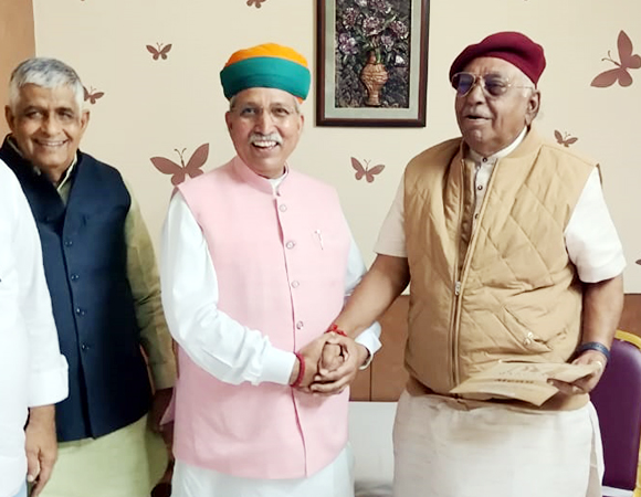 Source: बीकानेर की राजनीति के दो दिग्‍गज चेहरों के हाथ जब आपस में मिले तो अर्से से जमी हुई बर्फ पिघल सी गई। असल में, केन्‍द्रीय मंत्री अर्जुनराम मेघवाल और पूर्व सिंचाई मंत्री देवी सिंह भाटी के बीच लंबे समय से अदावत चल रही थी। आज दोनों ही दिग्‍गज नेताओं की जब मुलाकात हुई तो उसके कई मायने निकाले गए। लेकिन, मुलाकात के बाद दोनों ही नेताओं के चेहरों पर लाली सी छा गई। दोनों ने चुनाव को लेकर मंत्रणा की। साथ ही आगामी रणनीति तय की।