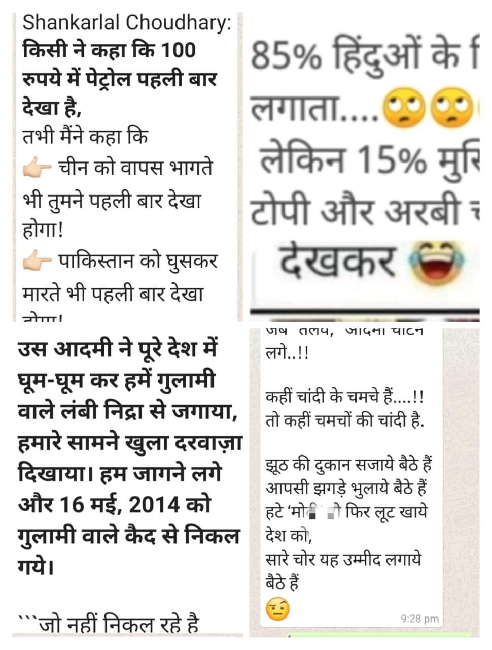 अहा ! …क्या लिख रहे हैं आजकल आईटीसेलिये। रोज वाट्स खोलते ही उनके रचे गये कहानियों के मैसेज पढ़कर दिल मौजा ही मौजा हो जाता है। लगता है कि अगर यह भीजेपी के आईटीसेलिये न होतें तो अपन का देश कब का खत्म हो गया होता।