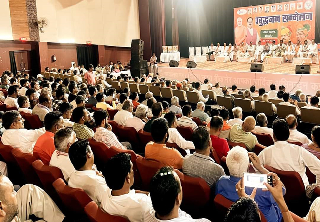 Sudhir Kevalia, district head of the Prabuddhajan cell, spoke in detail about the emergency. District President Vijay Acharya delivered a welcoming speech. The memorandum of gratitude was drawn up by the village general secretary, Kumbaram Siddha.