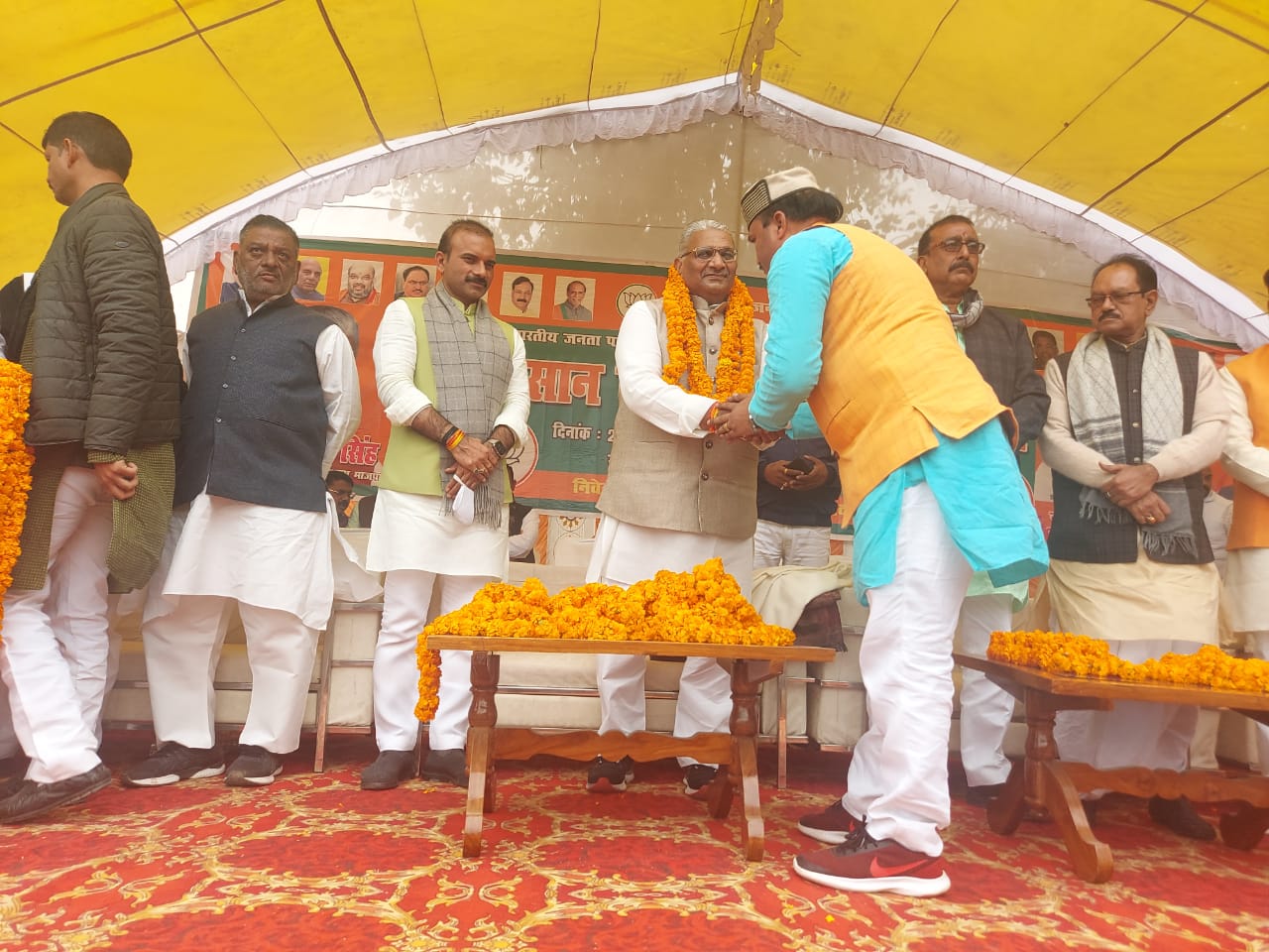इस दौरान भाजपा नेता कृष्णानंद पाण्डेय किसान मोर्चा जिलाध्यक्ष अभिषेक मिश्रा व पिछड़ा मोर्चा जिलाध्यक्ष सतीश चौहान एव जिलाध्यक्ष भाजपा अभिमन्यु सिंह जी के नेतृत्व में हजारों कार्यकर्ताओ के साथ शामिल हुए ।