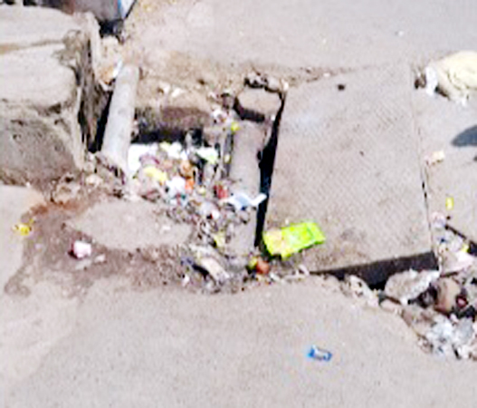 The iron grate at the top of the drain located at the corner of the Dauji temple was also damaged, making traffic very difficult here.