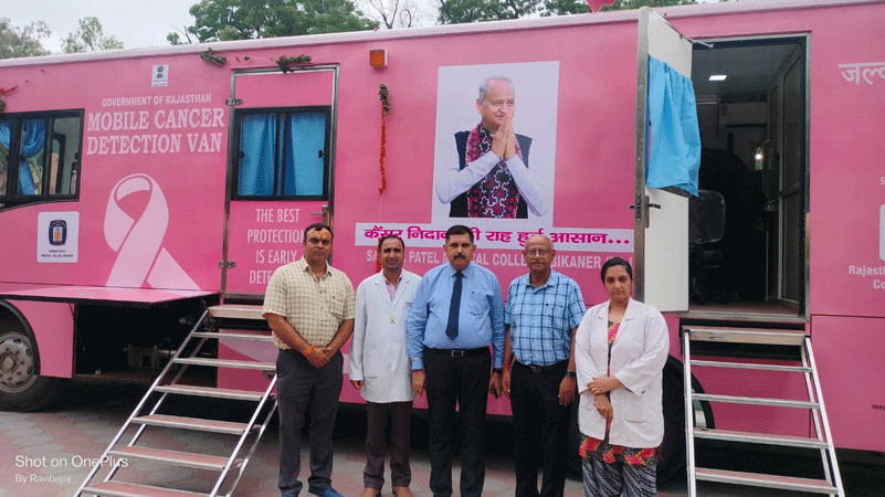Bikaner. Abhayindia.com मुख्यमंत्री अशोक गहलोत द्वारा अपने आवास से बीते बुधवार को बीकानेर संभाग के लिए जो मोबाइल कैंसर निदान वैन रवाना की गई वो एस.पी. मेडिकल कॉलेज पहुंच गई है। गुरूवार सुबह प्राचार्य एवं नियंत्रक डॉक्टर गुंजन सोनी ने कैंसर विभाग की टीम के साथ इस वैन का जायजा लिया।