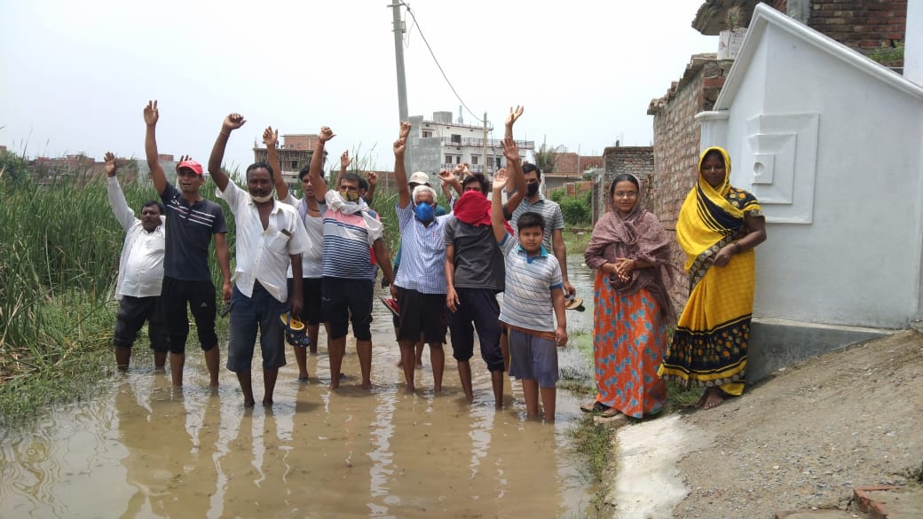 पिछले दिनों हुई तेज बारिश के कारण अलीनगर सहित अन्य क्षेत्रों में भी जलजमाव की स्थिति उत्पन्न हो गई है। कमोबेश यही हालात वार्ड नंबर 9 मुगलचक आदर्श नगर में भी बना हुआ है । पानी की निकासी के लिए बनी नाली राम मूरत मेमोरियल इंटर कॉलेज के पास अवरुद्ध हो जाने के कारण मुख्य मार्ग पर जलजमाव की स्थिति उत्पन्न हो गई है। जिससे होकर गुजरना वार्ड वासियों के लिए काफी मुश्किल भरा साबित हो रहा है। वार्डवासी इसमें गिरकर चोटिल हो जा रहे हैं। इसकी शिकायत भी वार्ड वासियों ने कई बार नगर पालिका के चेयरमैन व ईओ से किया। लेकिन अभी तक कोई सुनवाई नहीं हुई ।इससे आक्रोशित वार्ड वासियों ने मंगलवार को जमकर हंगामा और प्रदर्शन किया ।चेताया कि जल्द समस्या का समाधान नहीं हुआ तो हम वार्डवासी सड़क पर उतरने को बाध्य होंगे। इस संबंध में पूछे जाने पर सभासद प्रतिनिधि शिव शंकर शर्मा ने बताया कि मोटर खराब होने के बाद बनने के लिए गया है। कल से मोटर लगाकर पानी निकासी की समस्या दूर की जाएगी। प्रदर्शन करने वालों में मुख्य रूप से सोनी गुप्ता,नरेंद्र यादव, अवधेश सिंह ,महेंद्र यादव ,कन्हैया यादव, रमाकांत चौधरी, महेंद्र,जसवंत तिवारी, प्रमोद यादव ,संजय यादव आदि लोग मौजूद रहे।