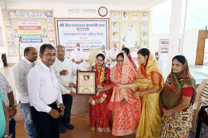 सुमधुर गायिका कोमल पुगलिया ने तप की महिमा व्यक्त करते हुए गीतिका प्रस्तुत की। सभाध्यक्ष अमरचंद सोनी, जीवराज सामसुखा, पवन छाजेड़ व मदनलाल बोथरा ने तपस्विनी शानू मालू का जैन पताका, साहित्य व अभिनंदन पत्र से सम्मानित किया। कार्यक्रम का संचालन रुचि छाजेड़ ने किया।