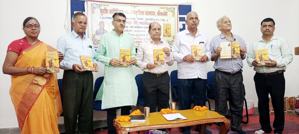 अध्यक्षता करते हुए नेहरू बाल साहित्य अकादमी जयपुर के उपाध्यक्ष बुलाकी शर्मा ने राजस्थानी उपन्यास में पोथी को एक नया आयाम बताया। लोकार्पण अतिथियों द्वारा किया गया। पुस्तक की परख लेखिका डॉ कृष्णा आचार्य ने प्रस्तुत करते हुए ग्रामीण क्षेत्र की ठेठ भाषा का उपयोग बताते हुए पुस्तक के हर पन्ने को खोला। संचालन रोहित बोड़ा ने किया कार्यक्रम के शुभारंभ पर सुरभि के सचिव दिनेश उपाध्याय ने आगंतुकों का स्वागत करते हुए संस्थान की गतिविधियों की जानकारी दी।