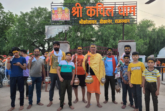 Bikaner. Abhayindia.com हर वर्ष की तरह इस वर्ष भी कपिल मुनि धाम कोलायत से कांवड़िये कांवड़ लेकर बीकानेर पहुंच रहे हैं। भगत सिंह यूथ क्लब के योगेश पुरोहित [पिन्टू] ने बताया कि कोलायत से बीकानेर तक की कांवड़ यात्रा सोमवार को बीकानेर पहुंच जाएंगी। यहां पहुंचने पर गोपेश्वर बस्ती स्थित श्रीगोपेश्वर महादेव जी मंदिर में कांवड़ियों द्वारा जल चढाया जाएगा।