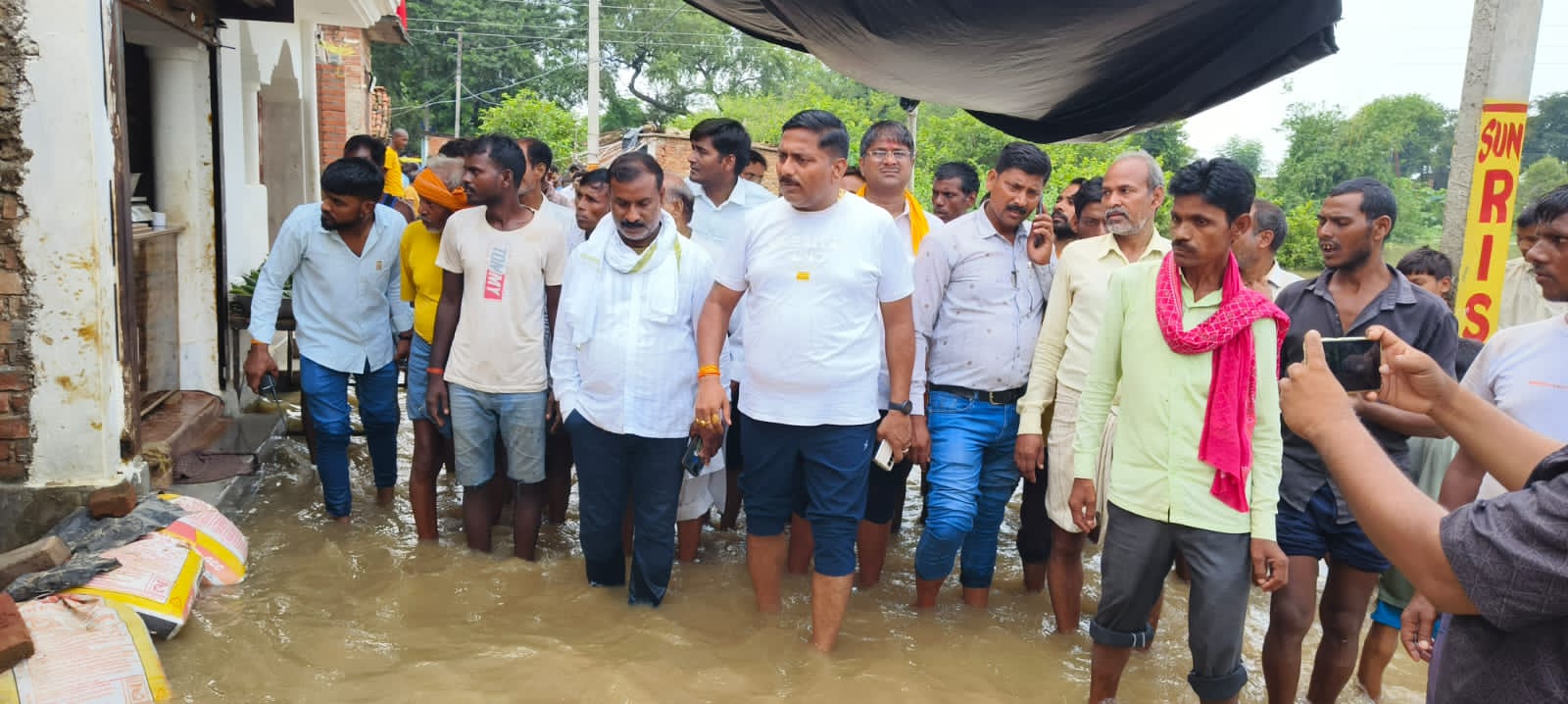 इसी बीच एक ऐसा पल आया, जब मैंने देखा कि निराश ग्रामीणों की आंखों में अचानक उम्मीद की चमक लौट आई। यह तब हुआ जब मुगलसराय विधायक रमेश जायसवाल खुद पानी में उतरकर बाढ़ पीड़ितों के बीच पहुंचे। मैं उनके साथ ही था। घुटनों तक चढ़े पानी में उनका कदम–कदम बढ़ाना, हाथों से लोगों को सहारा देकर सुरक्षित स्थानों तक पहुंचाना, राहत सामग्री खुद ग्रामीणों को सौंपना—यह सब कुछ मेरे लिए केवल खबर नहीं रहा, बल्कि दिल को छू लेने वाला अनुभव बन गया।
