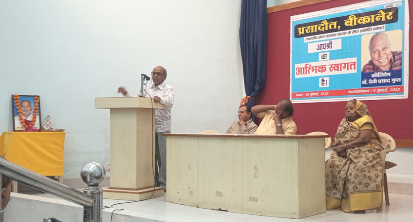 Bikaner Abhayindia.com The famous poet-critic Saral Wisharad during his address to the President on the first anniversary of the death of the great scientist, thinker, educator and researcher Kirtishesh Dr. Devi Prasad Gupta, not only of the state, but also of the country, on behalf of Prasadaut, Bikaner, an organization dealing with study of Indian knowledge traditions, reported that people from all walks of life gathered for this tribute ceremony. This proves how great was the personality of Deviprasaja Gupta. He recruited some of them for research work. Visharad said if you are wearing a garland then wear it like Deviprasad Gupta, if you are presiding then do it like Deviprasad Gupta.