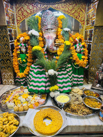 बीकानेर Abhayindia.com कोटगेट सट्टा बाजार स्थित श्रीब्राहम्ण स्वर्णकार गणेश मन्दिर में श्री गणेश भगवान को गुरुवार को विशेष पूजा अर्चना गई एवं भगवान को सर्दी की ऊनी पौशाक धारण करवाई। साथ ही मिगसर माह की थाली का भोग लगाया जिसमें लगभग 101 प्रकार के व्यंजन का भोग लगाया।