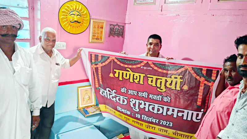 Bikaner. Abhayindia.com श्रीगणेश चतुर्थी के अवसर पर भीनासर स्थित गणेश धोरा धाम में 19 सितम्बर को मेला भरेगा। मेले के दौरान मंदिर में विशेष सजावट की जाएगी। इस अवसर पर महाआरती और भजन संध्या के आयोजन होंगे। मेले के पोस्टर का विमोचन बुधवार को श्रीगुरु महाराज शिवकुमार शर्मा के सान्निध्य में हुआ।