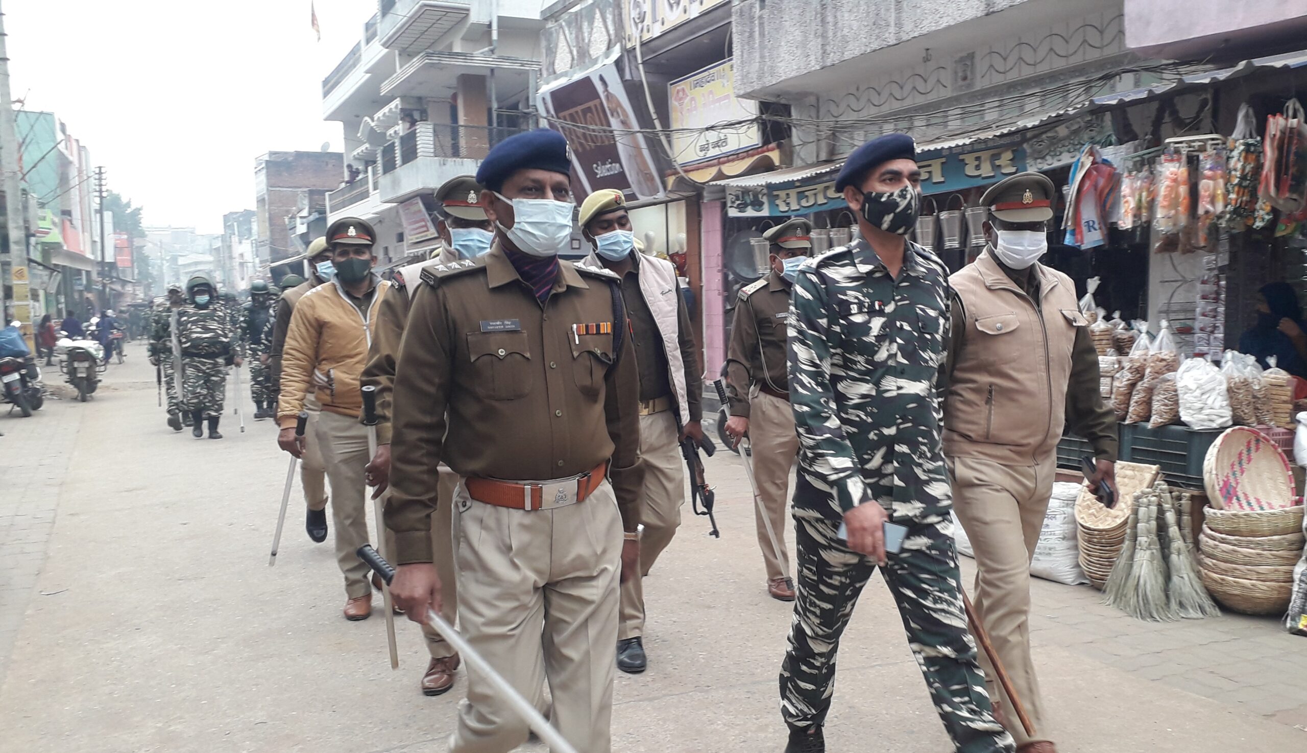 विधानसभा चुनाव को मद्दे नजर रखते हुए क्षेत्र में शांति व्यवस्था चुस्त दुरुस्त रखने व चुनाव को शांतिपूर्ण तरीके से संपन्न कराने के लिए सी.आर.पी.एफ. के जवानों तथा पुलिस द्वारा पैदल भ्रमण किया गया । शनिवार की दोपहर क्षेत्राधिकारी चकिया रामवीर सिंह तथा सी.आर.पी.एफ. सहायक कमाण्डडेन्ट रवि रंंजन के नेतृत्व में बबुरी थानाध्यक्ष अतुल कुमार व पुलिस फोर्स ने बबुरी बस स्टैंड से फ्लैैग मार्च निकालकर पूरे बाजार का भ्रमण किया । इस दौरान क्षेत्राधिकारी रामवीर सिंह ने लोगों से अपील किया कि विधानसभा चुनाव में सभी लोग निर्भीक होकर मतदान करें । मतदाता प्रभाव व बहाव से पृथक रहते हुए अपने अपने मत का प्रयोग कर अपने प्रत्याशी के लिए मतदान दे।