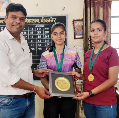 सार्दुल उच्च माध्यमिक विद्यालय के प्रिंसिपल यशपाल पंवार ने बताया कि हाल ही में अजमेर में संपन्न हुई 67वीं राज्य स्तरीय स्कूली टेबल टेनिस टूर्नामेंट में विद्यालय की छात्रा प्रांशी मिश्रा एवं चंचल पंवार ने शानदार प्रदर्शन करते हुए बीकानेर टीम को 19 वर्ष आयु वर्ग में गोल्ड मेडल दिलवाया है। दोनों खिलाड़ियों का का आज विद्यालय पहुंचने पर भव्य स्वागत किया गया।
