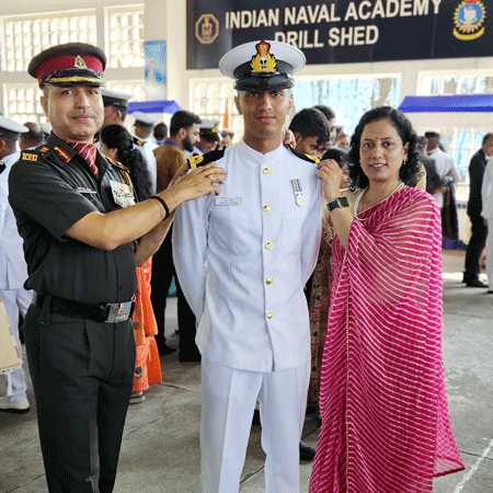 बीकानेर Abhayindia.com बीकानेर के रवीश राठौड़ को भारतीय नौ सेना में सब लेफ्टिनेंट के कमीशन के साथ बी टेक. की उपाधि से नवाजा गया है, जो न केवल बीकानेर बल्कि राजस्थान के लिए के गौरव की बात है। भारतीय नौसेना अकादमी, एजिमला, केरल से इलेक्ट्रॉनिक्स और कम्युनिकेशन इंजीनियरिंग में बी.टेक डिग्री के साथ सब लेफ्टिनेंट बने रवीश के पिता कर्नल अशोक सिंह राठौड़ एवम माता डॉक्टर तरुणा भाटी ने भारतीय नौसेना अकादमी एजिमला में 24 और 25 नवम्बर को आयोजित समापन समारोह और ग्रैंड पासिंग आउट पैरेड में रवीश को यह गौरव सार्वजनिक रूप से प्रदान किया।