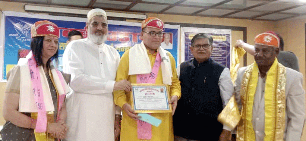 बीकानेर Abhayindia.com बीकानेर के उर्दू, हिंदी एवं राजस्थानी भाषा के वरिष्ठ शाइर, कहानीकार एवं अनुवादक क़ासिम बीकानेरी को उनके बाल कहानी संग्रह “छपाक छई” के लिए अदबी उड़ान राष्ट्रीय बाल साहित्य पुरस्कार से उदयपुर के प्रसार शिक्षा निदेशालय सेमिनार हॉल,आर.सी.ए. केंपस में हुए राष्ट्रीय समारोह में पुरस्कृत किया गया। पुरस्कार एवं सम्मान के क्रम में कार्यक्रम के अतिथियों द्वारा क़ासिम बीकानेरी को मेवाड़ी साफा, शॉल, उपरना, माल्यार्पण एवं नगद राशि भेंट करके पुरस्कृत किया गया।