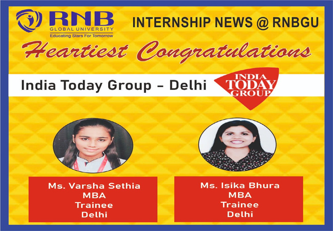 Bikaner Abhayindia.com Four RNB Global University students have set another measure of success. We are proud that Vansh Setia, Ishika Bhura, Unnati Mal and Vaishali Bhura have been selected to intern at India Today Delhi. We inform you that the RNB Global University Incubation and Entrepreneurship Cell is registered with the Ministry of Education of the Government of India. Along with this, IICID (ID IIC) has also been granted as Innovation Cell, Ministry of Human Resources Development, Government of India which is IC202220341.