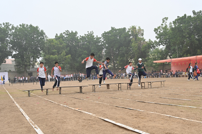 कार्यक्रम के प्रारंभ में एनसीसी और स्काउट के विद्यार्थियों की मार्च पास्ट तथा नर्सरी के विद्यार्थियों द्वारा बैलून रिलीजिंग का कार्यक्रम देखने योग्य था। भाग लेने वाले सभी खिलाड़ियों को को खेल प्रभारी विनय कुमार विश्नोई के निर्देशन में शपथ दिलवाई गई। विद्यालय के स्काउट एंड गाइड्स के द्वारा पिरामिड का प्रदर्शन भी सराहनीय रहा। प्री प्राइमरी विंग के विद्यार्थियों की एनिमल रेस, बैकपैक रेस, वन लेग रेस, टिप ऑन टॉप, आदि प्रतियोगिताओं ने दर्शकों की तालियां बटोरी। खिलाड़ियों ने 100 मीटर, 200 मी, सेक रेस, रिले रेस, थ्री लैंग रेस, लेमन स्पून रेस, रिवर्स रेस, ऑब्सर्टेकल रेस का आयोजन किया गया तथा 600 से अधिक विजेताओं को पधारे हुए अतिथियों द्वारा स्वर्ण, रजत एवं कांस्य पदक प्रदान किए गए। अभिभावकों के लिए भी विभिन्न प्रतियोगिताओं का आयोजन किया गया सर्वाधिक सराहना दादा-दादी की रेस को मिली।