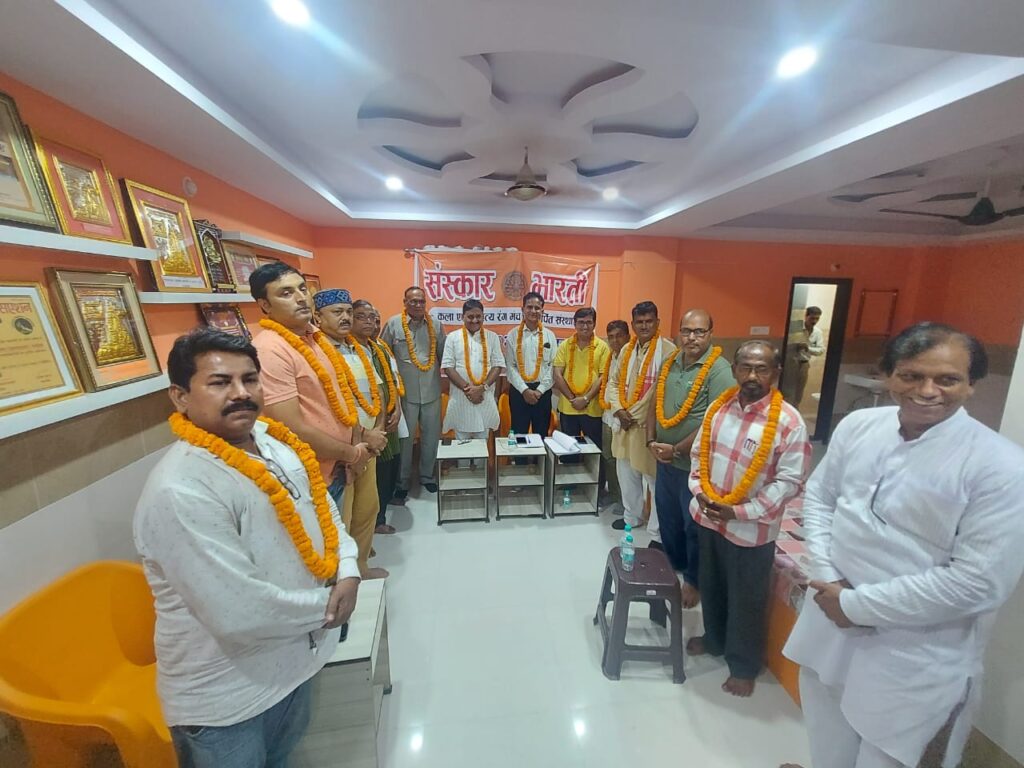 चंदौली । रवि नगर स्थित श्याम वाटिका में संस्कार भारती संस्था के साधारण सभा की एक आवश्यक बैठक संपन्न हुई। प्रांतिय पर्यवेक्षक की देखरेख में एक बार पुन: सतीश जिंदल को दोबारा चंदौली जिला अध्यक्ष पद चुना गया।कार्यक्रम के मुख्य अतिथि संस्कार भारती के प्रांतीय पर्यवेक्षक अतुल कुमार चतुर्वेदी रहे। कार्यक्रम को संबोधित करते हुए संस्कार भारती के प्रांतीय पर्यवेक्षक अतुल कुमार चतुर्वेदी ने कहा कि संस्कार भारती राष्ट्रीय स्वयंसेवक की अनुषांगिक संस्था है इसकी स्थापना को 42 वर्ष हो चुके हैं पाश्चात्य सभ्यता और संस्कृति ने भारतीय सभ्यता और संस्कृति को कुठाराघात किया इसी के चलते संस्कार भारती का गठन करना पड़ा। भारतीय साहित्य और समाज पर पाश्चात्य सभ्यता ने प्रहार कर संस्कृति को छिन्न-भिन्न करने का प्रयास किया। संस्कार भारती संस्था के द्वारा कलाओं की सृजनात्मकता सामाजिक तथा शिक्षा प्रदता का संवर्धन करना और मानव को सत्यम शिवम सुंदरम के परम आनंद की अनुभूति कराना। कला में प्रेरणा देती है मानव मन में प्रतिष्ठित करुणा को प्रस्फुटित करती है। संस्कार भारती की संकल्पना का उद्देश्य इस सास्वत सिद्धांत को पुनः स्पष्ट करना और प्रत्येक ललित कला को उसके प्राचीन वैभव के उच्च सिंहासन पर विराजमान करना है। वही संस्था के अध्यक्ष सतीश जिंदल ने कहा कि आप सभी सदस्यों के सहयोग से मैं दूसरी बार अध्यक्ष बना हूं। संस्था की नीतियों को जन जन तक पहुंचाने का कार्य करुंगा। कार्यक्रम का समापन वंदे मातरम एवं भारत माता की जय घोष पर समाप्त हुई। इस अवसर पर उपाध्यक्ष डॉ मनोज सिंह, कोषाध्यक्ष संजय राय, आय व्यय निरीक्षक शरद चंद्र मिश्रा, सह मंत्री डॉ मुकेश प्रताप सिंह, मंत्री सुनील केसरी, प्रीति श्रीवास्तव, अनिता कुशवाहा, कंचन बनर्जी, धर्म प्रकाश शर्मा उपस्थित रहें।कार्यक्रम की अध्यक्षता सतीश जिंदल ने और संचालन महामंत्री सुरेश अकेला ने किया।