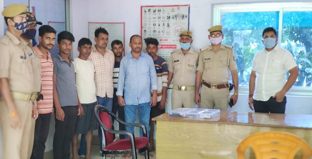 बबुरी थानाध्यक्ष सतेंद्र विक्रम सिंह को मुखबिर द्वारा सूचना मिली की एक पिक अप वाहन से जनपद मिर्जापुर के डवक क्षेत्र से होते हुए अशोक नहर पुलिया से बनौली के रास्ते चन्दौली हाइवे से नौबतपुर होते हुए बिहार ले जाया जा रहा है। इस सूचना पर संयुक्त पुलिस टीम द्वारा दबिश देकर मंंगलवार की भोर में बनौली चट्टी के पास 07 गोवंश तस्करों को एक चोरी के पिकप वाहन के साथ गिरफ्तार कर लिया । वाहन के अन्दर क्रूरतापूर्वक रस्सी से 6 गोवंश बाँधकर लादे गये थे । गिरफ्तार अभियुक्तो के पास से 12 मोबाइल फोन 17777 रूपये नगद तथा दो अदद चेन व 03 अंगूठी बरामद हुआ। पकड़े गए अभियुक्तों ने अपनी पहचान बर्खास्त मुख्य आरक्षी अनिल कुमार सिंह निवासी खालिसपुर जलालपुर जिला जौनपुर, बाबू यादव निवासी शाह कुटी थाना मुगलसराय चंदौली, बीरेन्द्र कुमार उर्फ बिज्जल यादव निवासी टड़िया थाना अलीनगर चन्दौली, राजकुमार यादव उर्फ गोलू उर्फ बाबा निवासी टड़िया थाना अलीनगर चन्दौली , किशन यादव निवासी नरैली थाना दुर्गावती जनपद कैमूर (बिहार) कमलेश साहनी निवासी नौबतपुर थाना सैयदराजा चन्दौली , रमेश साहनी उर्फ राजू निवासी नौबतपुर थाना सैयदराजा चन्दौली के रूप में बताई । जिन्हें गिरफ्तार कर संबंधित धाराओं में जेल भेज दिया गया इस संबंध में एडिशनल एसपी ऑपरेशन नक्सल सुखराम भारती ने बताया कि बबुरी पुलिस की कार्यवाही में 6 पशु तस्कर पकड़े गए हैं । इन अभियुक्तोंं का पुराना अपराधिक इतिहास रहा है पूछताछ मेंं बताया कि इन सभी का एक संगठित गिरोह है । जो चंदौली से होते हुए नौगढ बॉर्डर से पशुओं को बिहार ले जाते हैं । अभियुक्तों साथ पुलिस विभाग से बर्खास्त एक दिवान भी शामिल है । अभियुक्तों के खिलाफ सम्बंधित धाराओं में मुकदमा दर्ज कर अग्रिम कार्यवाही कर रही है ।