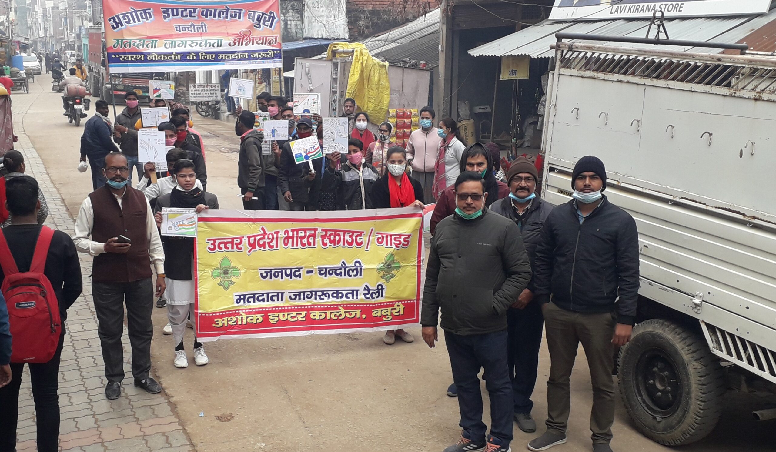 बबुरी । मतदाता जागरूकता दिवस के अवसर पर मंगलवार की दोपहर अशोक इंटर कॉलेज के छात्र छात्राओं ने रैली निकालकर लोगों को मतदान करने के लिए जागरूक किया । रैली के दौरान बच्चे हाथ में मतदान जागरूकता को प्रेरित करने वाली तख्तियां लिए चल रहे थे । छात्र रैली में ‘ छोड़ो अपने सारे काम, पहले चलो करें मतदान ‘ के नारे लगाते हुए चल रहे थे । इस दौरान रैली का नेतृत्व कर रहे प्रवक्ता वीरेंद्र कुमार सिंह ने कहा कि मतदान हमारा मौलिक अधिकार है, इसलिए हम सभी को इसका सार्थक प्रयोग अवश्य करना चाहिए । मतदान का प्रयोग करके हम एक स्वच्छ छवि के सरकार का चुनाव कर सकते हैं । इसलिए मतदान के महापर्व में हम सभी को बढ़ चढ़कर हिस्सा लेना है । रैली के दौरान बाँके बिहारी सिंह, शशिकला सिंह, बिजयी मौर्या आदि मौजूद रहे ।