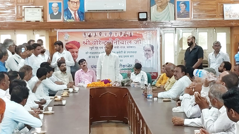 Urmul Dairy Chairman Noparam Jakhar, State Congress Secretary Shivlal Godara, Ramnivas Kukna and Lunkaransar Bloc Congress President Govind Ram Godara, Congress Country President Mahila Rajkumari Vyas and City President Sunita Gaur congratulated State Congress Vice President Virendra Benivala on his new appointment. representative of the people, he set his own example for the whole state. All Congress officials stated in their address that we should all strengthen the Congress party together and reassemble the Congress government in Rajasthan.