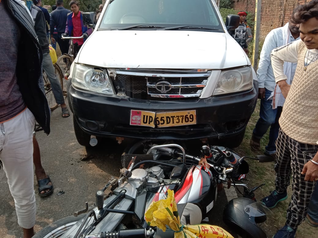 प्राप्त जानकारी के अनुसार सोमवार को मिर्जापुर जिले के मुड़हुवा गांव निवासी अनिल (23 वर्ष) अपने बुआ के लड़के दिनेश (21वर्ष) के साथ बाइक पर सवार होकर अपने बहन के घर नेगुरा चंदौली खिचड़ी पहुंचाने गया था। खिचड़ी पहुचा कर वापस अपने गांव मुड़हुवाँ लौट रहा था । वह बबुरी चंदौली मार्ग पर टडिया गांव के पास पहुँचा ही था कि सामने से आ रही एक अनियंत्रित पिकअप वाहन ने सामने से जोरदार टक्कर मार दी। टक्कर लगते ही दोनों बाइक सवार युवक सड़क पर गिरकर गंभीर रूप से घायल हो गए। घटना होते देख आसपास के ग्रामीणों की भीड़ इकट्ठा हो गई।किसी ने घटना की जानकारी बबुरी पुलिस को दी।सुचना पर पहुंचे बबुरी थानाध्यक्ष अतुल कुमार ने दोनों घायल युवकों को एंबुलेंस की मदद से इलाज हेतु जिला चिकित्सालय भिजवाया।
